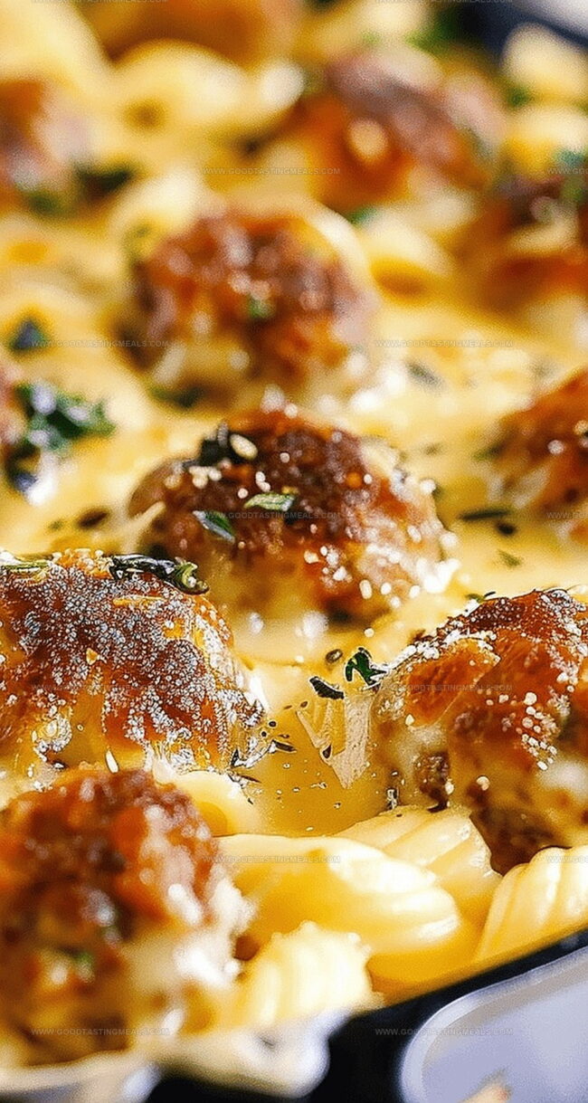 Meatball macaroni and cheese elevates classic comfort food into a hearty, irresistible feast that blends two beloved dishes.
