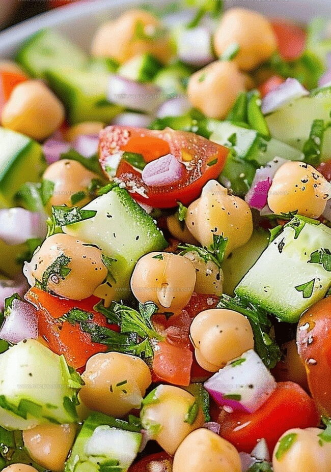 Mediterranean Chickpea Salad offers a refreshing blend of crisp vegetables, protein-packed chickpeas, and zesty herbs. Tangy feta and olive oil create a light, delicious medley that whisks you straight to sun-drenched Greek coastal landscapes.