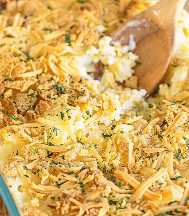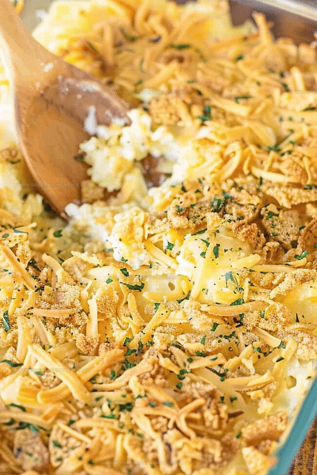 - Topping Layers: Sprinkle grated parmesan cheese across the surface, then crown with crispy French fried onions for a golden, crunchy finish.