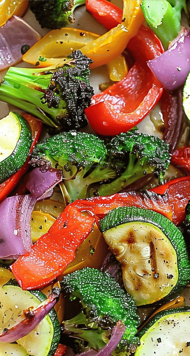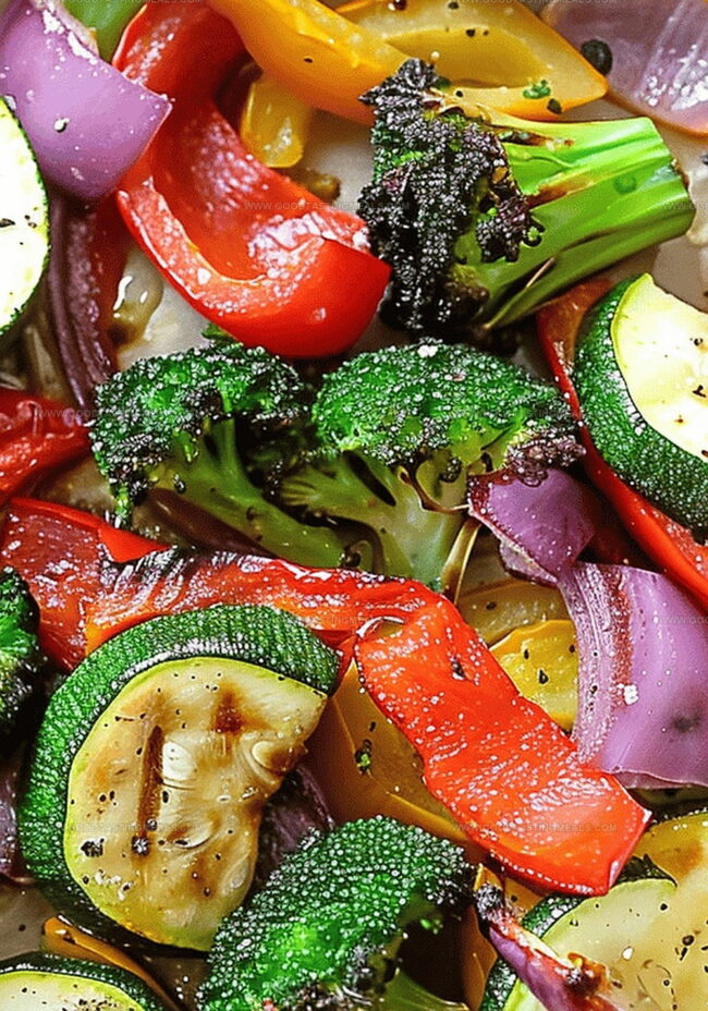 - Prepare all the vegetables by meticulously chopping red bell pepper, yellow squash, zucchini, red onion, and broccoli into uniform, bite-sized chunks to ensure consistent cooking.