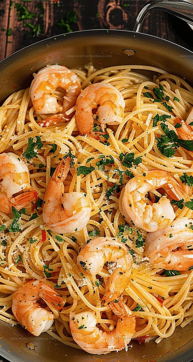 Succulent Mediterranean shrimp spaghetti delivers ocean-fresh flavors with zesty garlic and herbs. Pasta lovers will savor this quick, elegant dish that brings coastal Italian charm right to their dinner table.