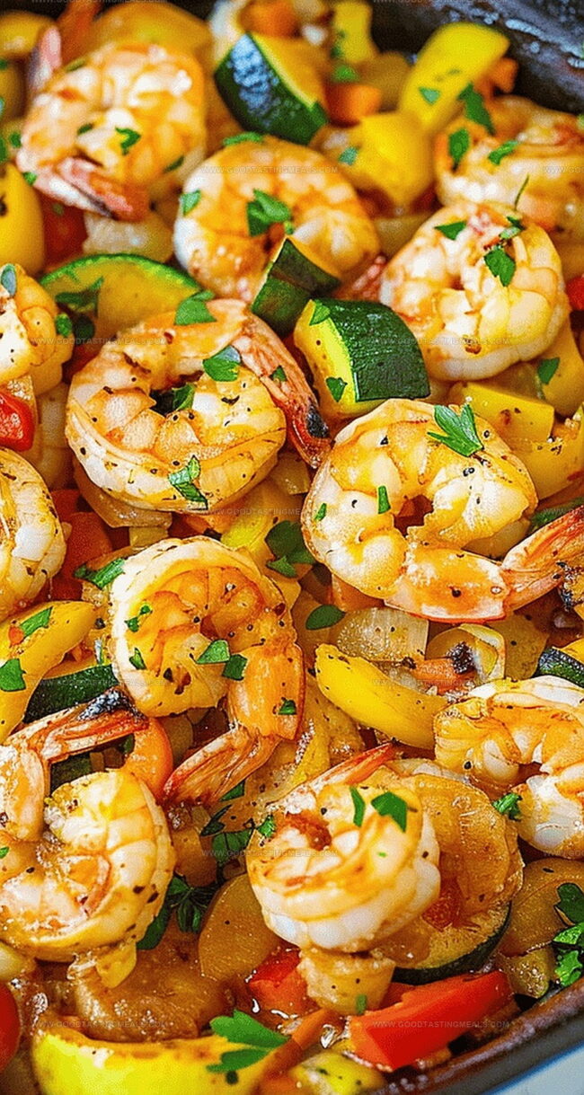 Succulent shrimp dance with colorful vegetables in this Mediterranean-inspired skillet sensation. Quick and healthy flavors merge effortlessly, delivering a delightful meal you’ll crave again and again.