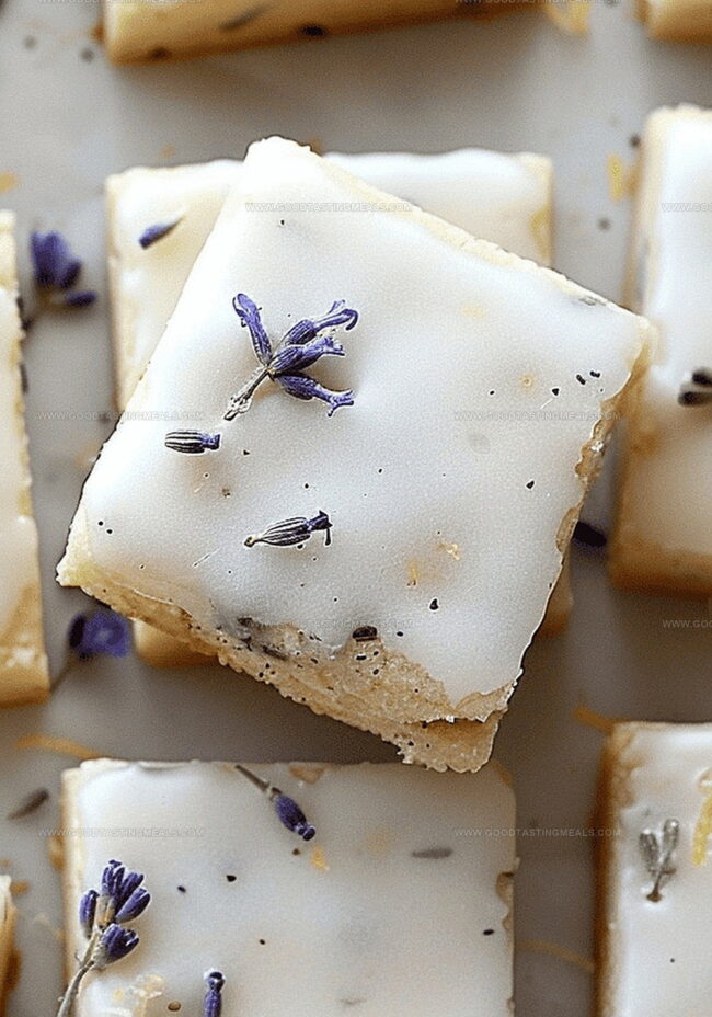 Warm the oven to a gentle 300°F. Bake the shortbread until edges turn a beautiful golden hue, releasing a tantalizing aroma of lemon and lavender that fills the kitchen.