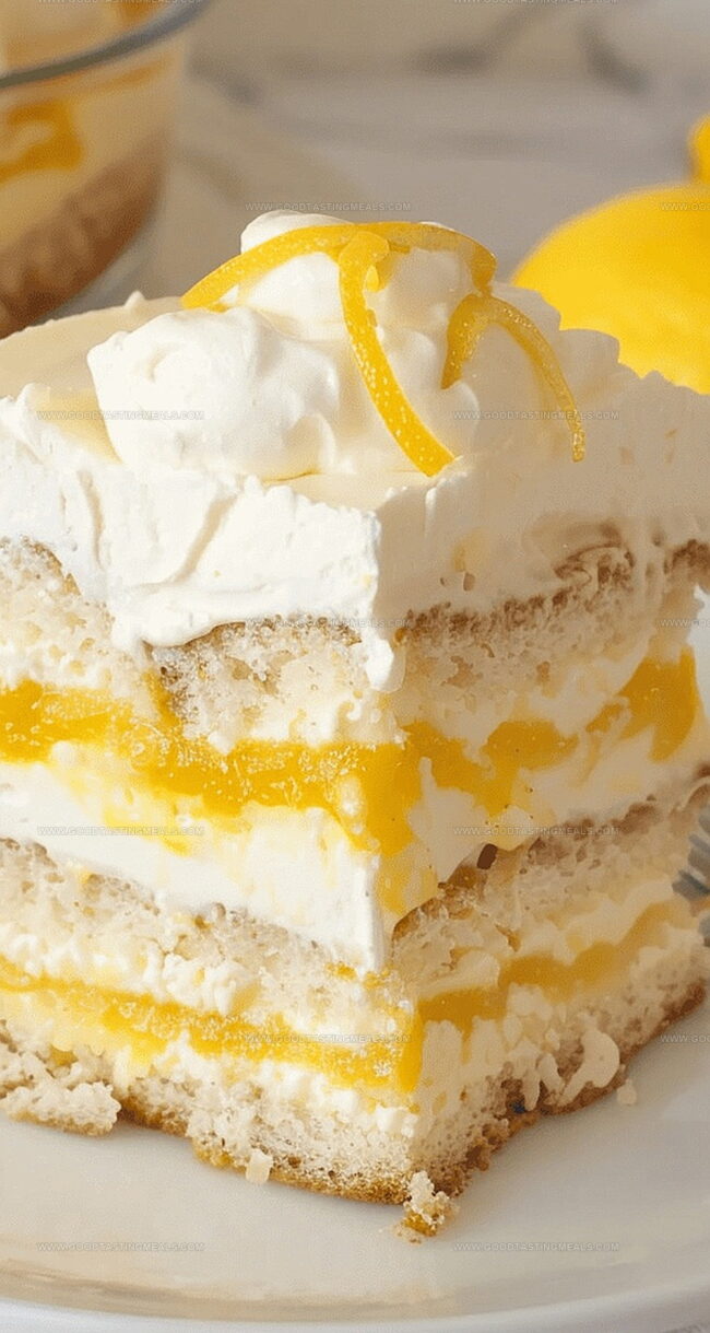 Each spoonful delivers a luxurious blend of soft ladyfingers soaked in bright lemon syrup and silky mascarpone cream.