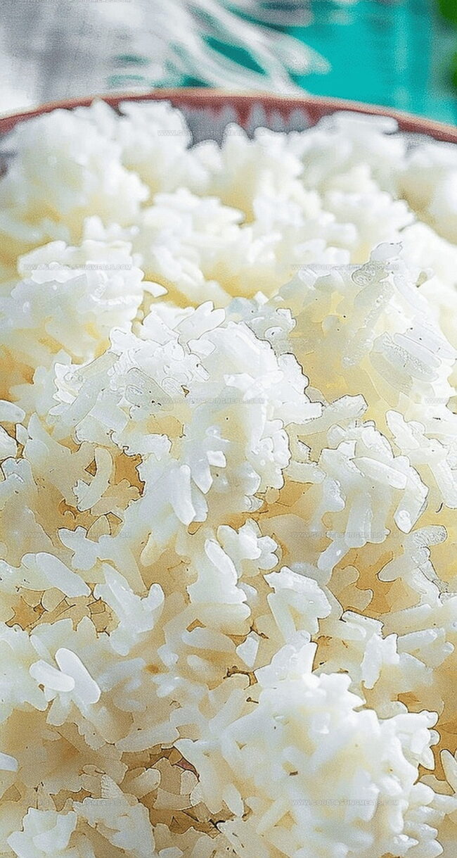 - Using a fork, delicately separate and fluff the rice grains, creating a light, airy texture before serving immediately.