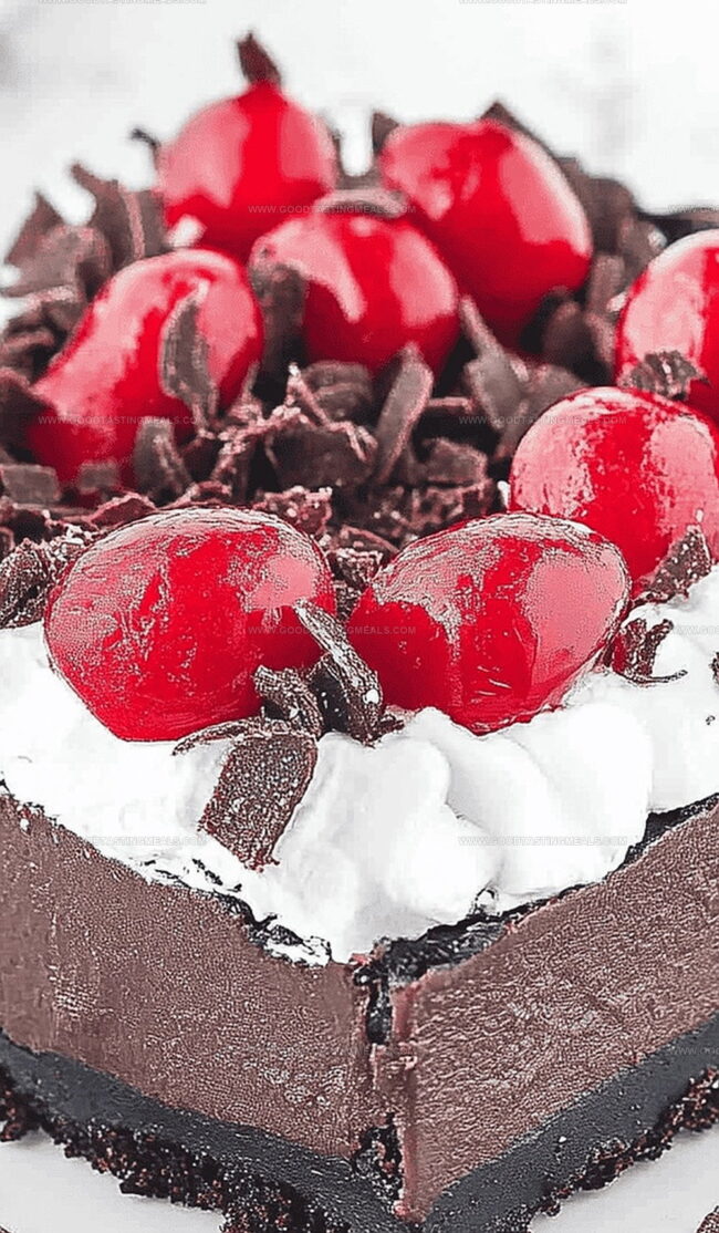 Chocolate lovers will swoon over the indulgent layers of creamy cheesecake infused with classic black forest flavor combinations.