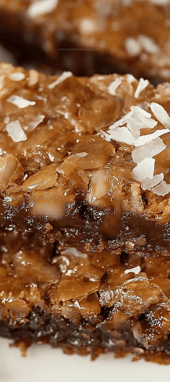 - Finishing Touch: Remove from heat and stir in vanilla extract, pecans, and coconut. Spread topping uniformly across cooled brownies. Optionally sprinkle with sea salt for added depth. Briefly chill to set the topping.