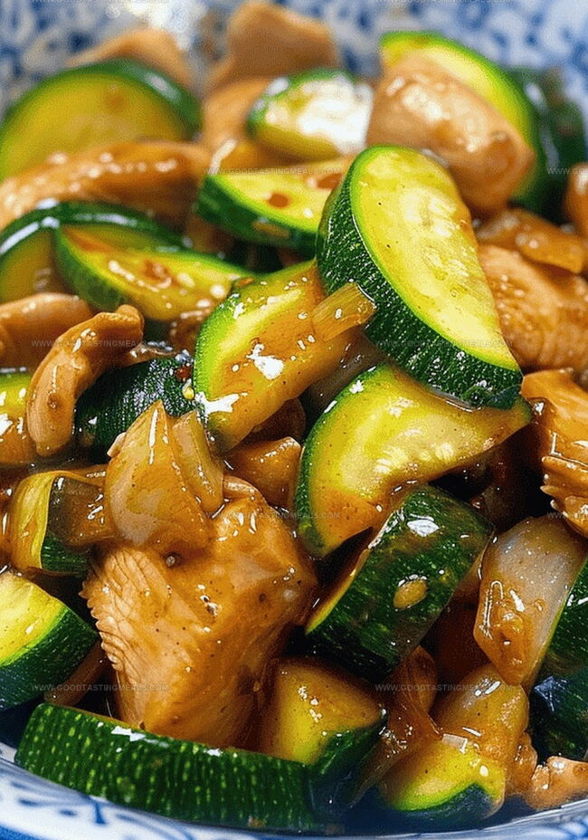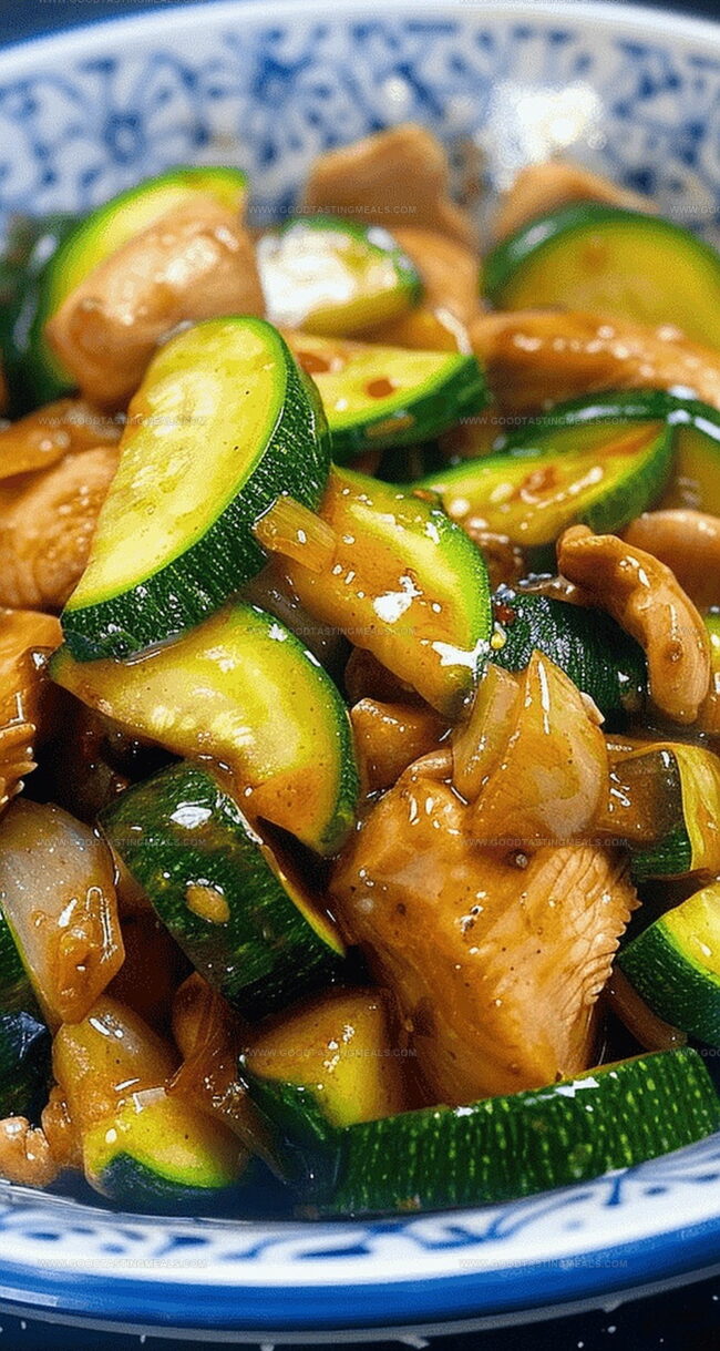 Tender chicken pieces mingle effortlessly with crisp zucchini slices, creating a harmony of textures and tastes.