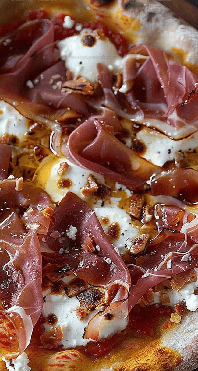Cheesy hot honey pizza with prosciutto and ricotta delivers a perfect balance of sweet, spicy, and savory flavors. Crisp crust, creamy ricotta, and salty prosciutto create a memorable culinary experience you will crave again and again.