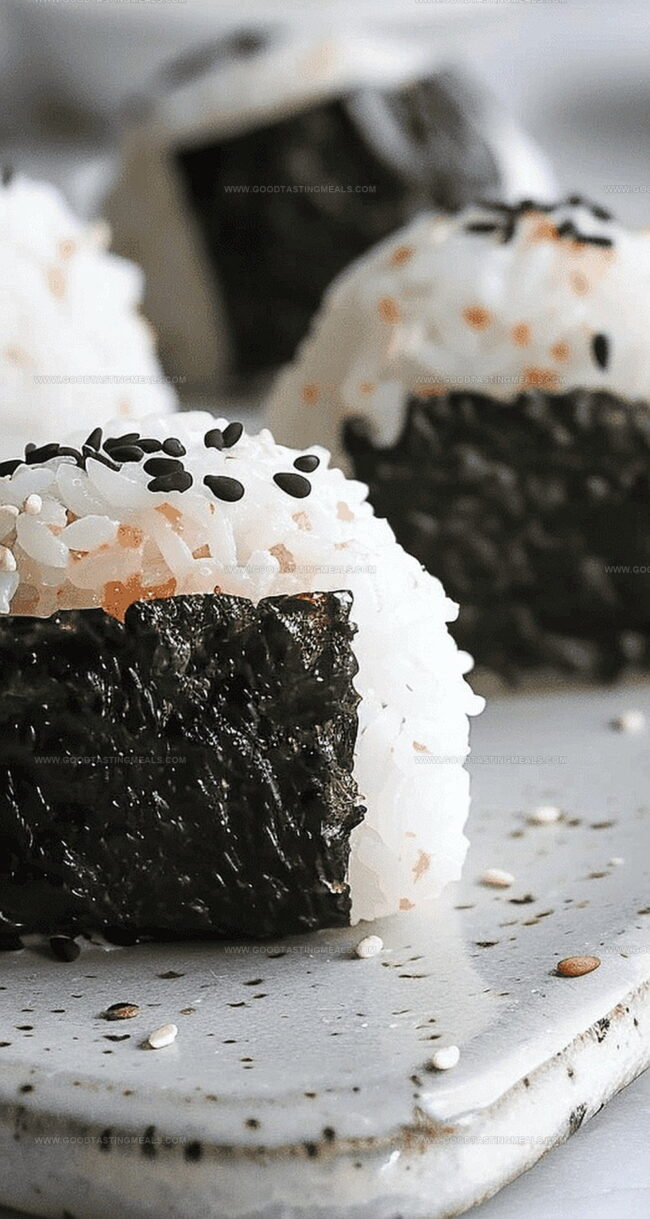 - Optional: Sprinkle black sesame seeds over the onigiri for added texture and visual appeal.