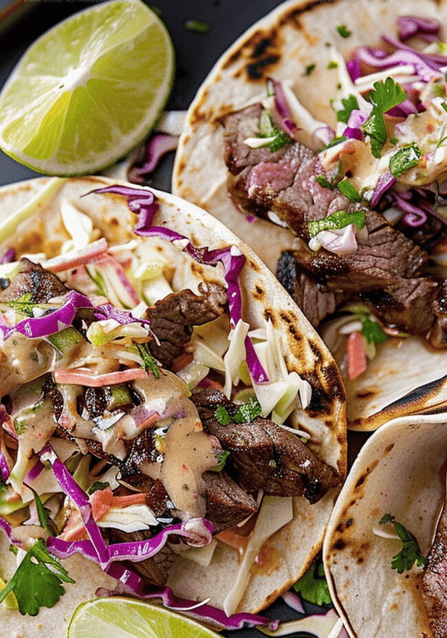 Sizzling Mexican street tacos bring bold flavors straight from authentic roadside kitchens. Juicy marinated steak nestles in warm tortillas, crowned with zesty chipotle lime coleslaw that delivers a crisp, tangy punch you’ll crave again and again.