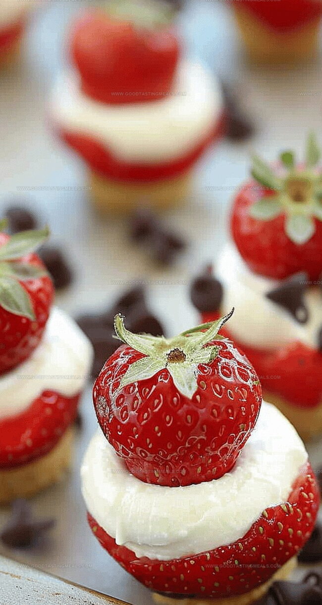 - Enhance the strawberry bites with delicate garnishes such as mini chocolate chips, crushed graham cracker fragments, or a dollop of whipped cream to add texture and visual appeal.
