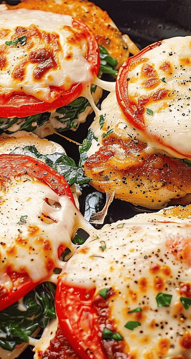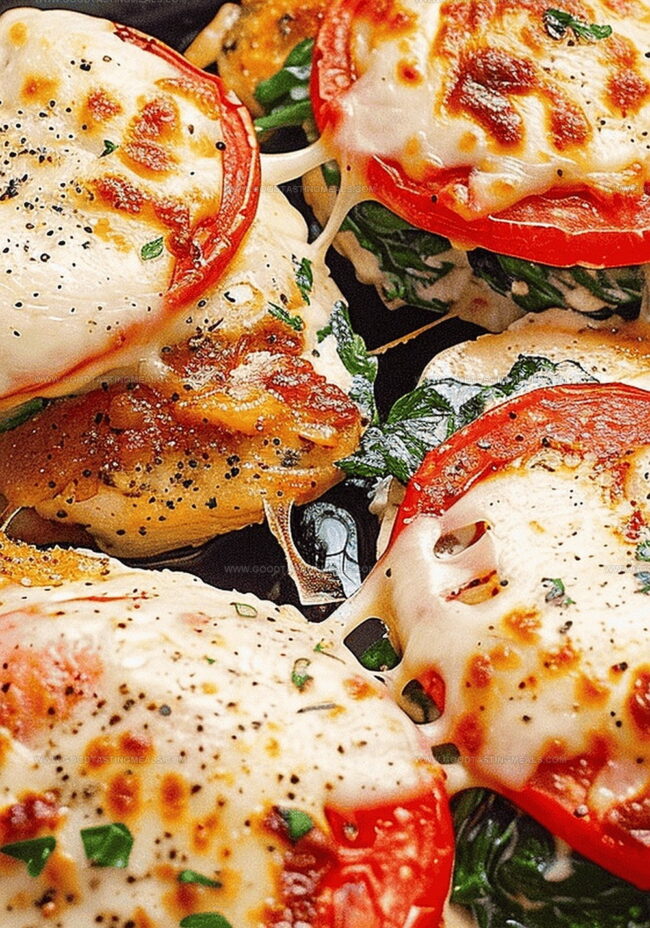 Embellishment: Crown each chicken breast with fresh tomato slices and an additional mozzarella cheese sprinkle, enhancing visual appeal and flavor complexity.