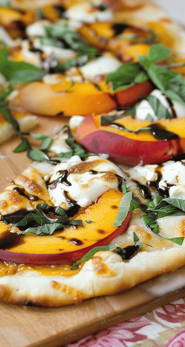 Grilled Peach Pizzetta: Replace oven baking with outdoor grilling, using a pizza stone or grill-safe surface. Char peaches slightly before adding to enhance smoky flavor and caramelize natural sugars.