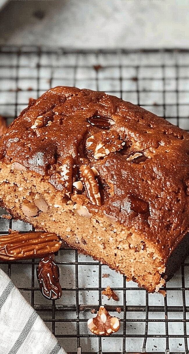 The subtle crunch of toasted nuts complements the soft, moist crumb perfectly.