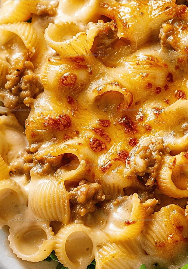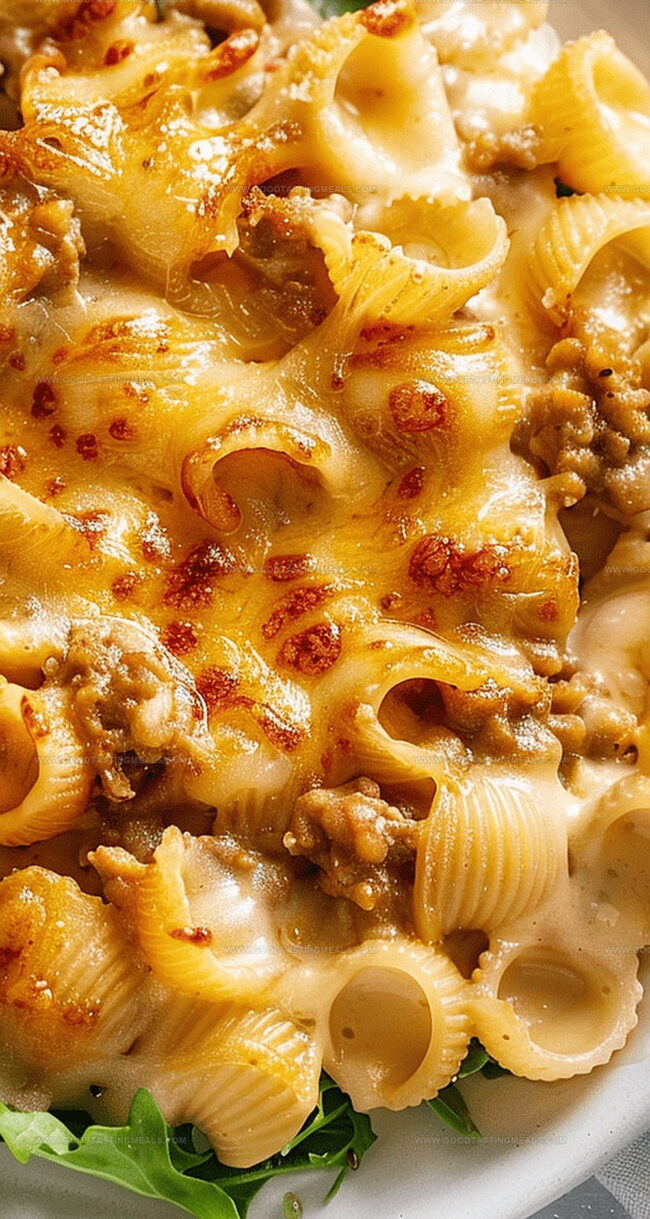- Merge cooked pasta, velvety cheese sauce, and seasoned beef mixture.