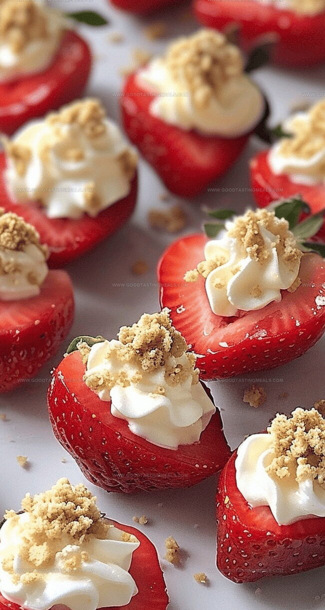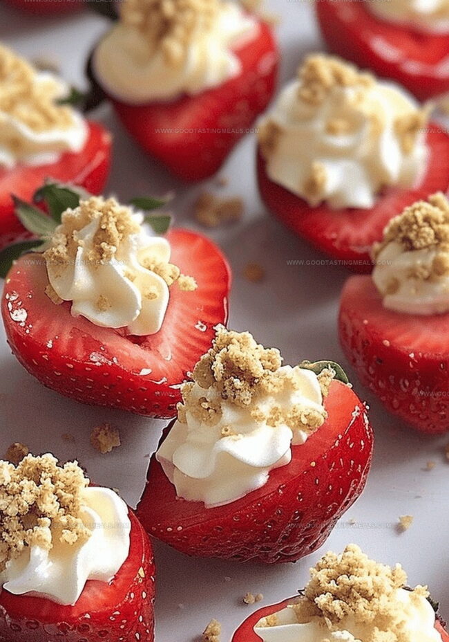 - Serving and Storage: Chill the deviled strawberries immediately or serve right away to preserve their fresh appearance and creamy consistency. The dessert offers a perfect balance of tangy, sweet, and creamy flavors with a textural graham cracker accent.