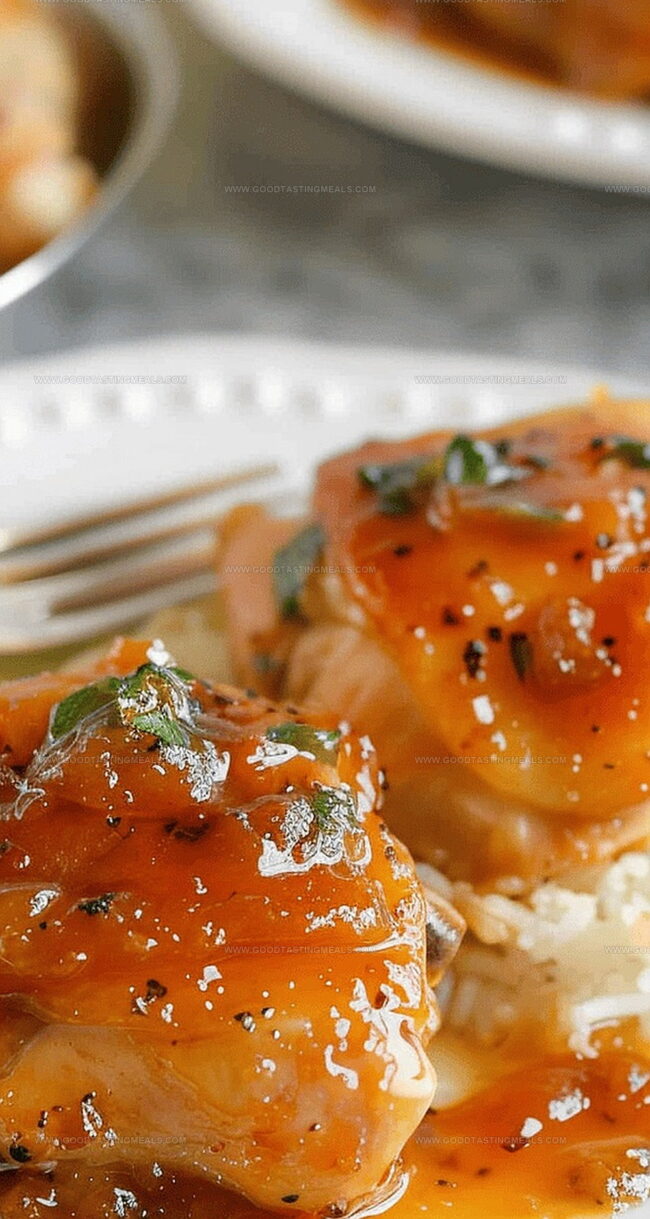 Succulent and tender apricot chicken thighs deliver a burst of sweet-tangy flavor that dances across your palate.
