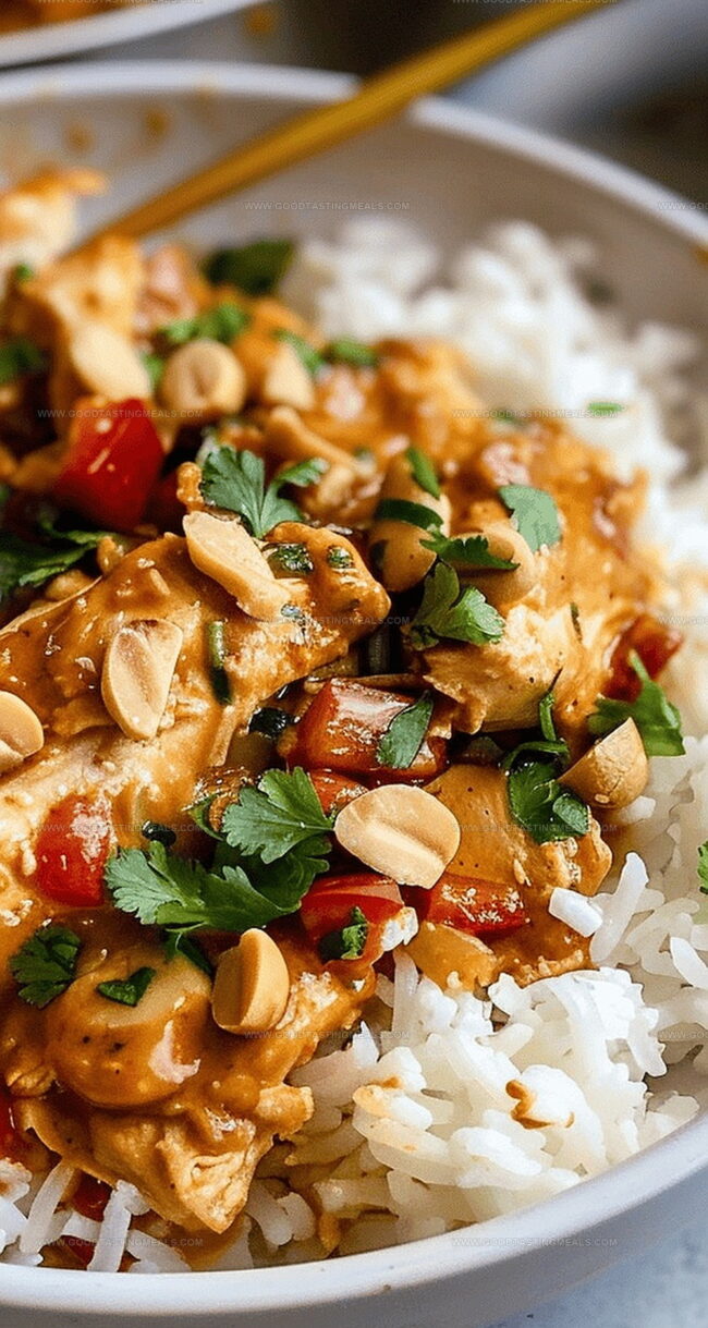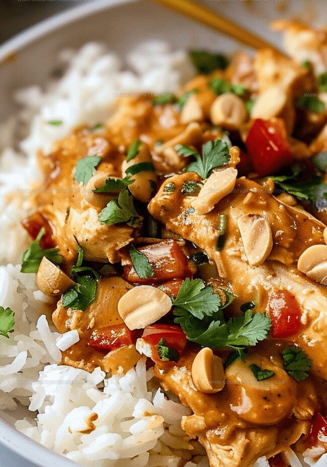 Tender chicken drenched in a mouthwatering peanut sauce simmers to perfection in this slow cooker peanut chicken recipe that promises pure comfort.