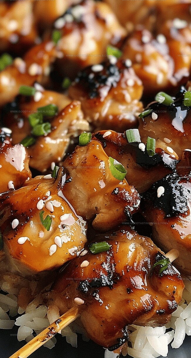 - Garnish freshly grilled skewers with finely chopped green onions and a delicate sprinkle of toasted sesame seeds.