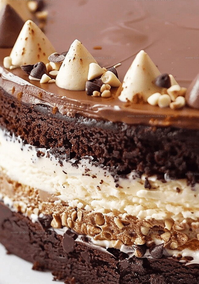 Rich chocolate tuxedo cake delivers elegance with dramatic layers of dark chocolate sponge, creamy vanilla mousse, and glossy ganache. Sophisticated dessert promises a memorable indulgence that sparkles with delicate chocolate artistry for special celebrations.