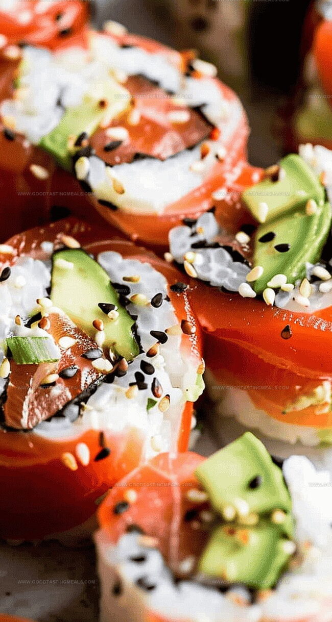 Greek-inspired tzatziki avocado salmon rolls deliver Mediterranean magic on your plate. Creamy avocado, tender salmon, and zesty tzatziki sauce create a luxurious blend that transports you to coastal Greek shores with each delightful bite.