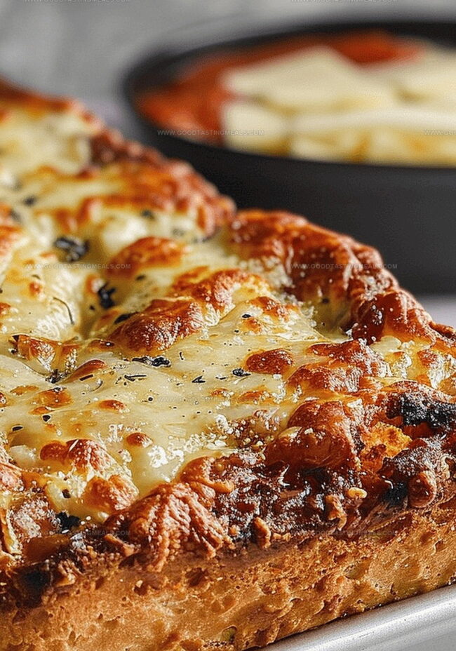 Melted cheese creates a golden, gooey blanket that stretches with every pulled slice, promising pure indulgence.