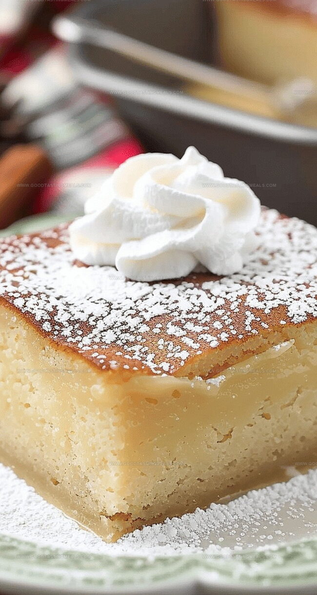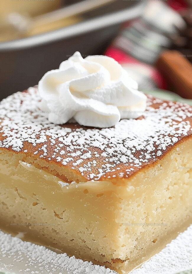 Magic eggnog cake blends holiday nostalgia with delightful culinary surprise. Layered dessert delivers creamy custard beneath delicate sponge, promising sweet celebrations that welcome festive cheer.
