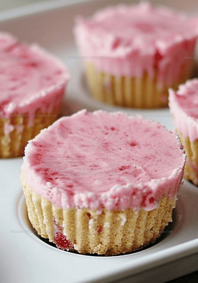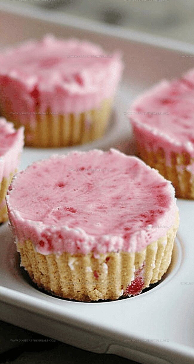 - Assembly and Freezing: Distribute strawberry-yogurt mixture evenly over cookie base, filling each liner 2-3 tablespoons deep. Transfer pan to freezer and allow to solidify completely for 3-4 hours until thoroughly set and icy.