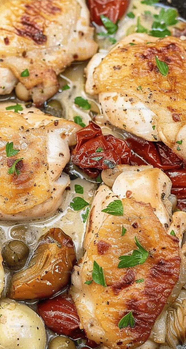 Chicken: Lean protein that serves as the star of the dish, absorbing the Mediterranean-inspired flavors beautifully.