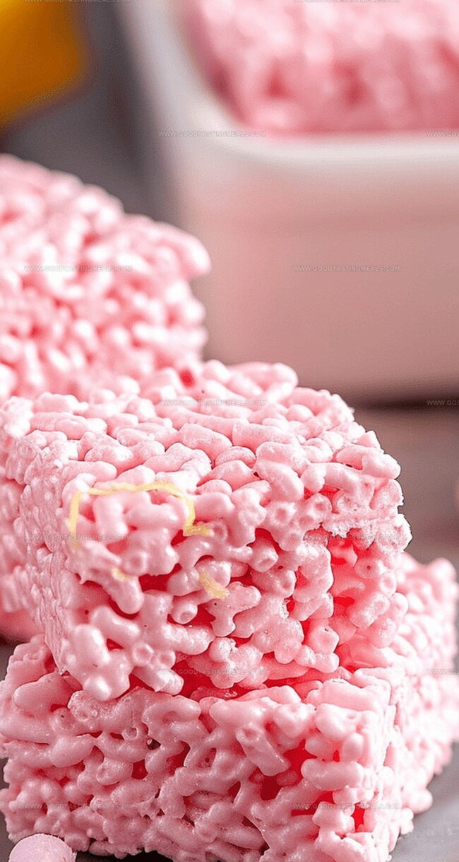 - Serving: Once completely cooled, slice the treats into uniform squares or playful shapes, revealing the delightful pink lemonade-infused Rice Krispie creation ready to be enjoyed.