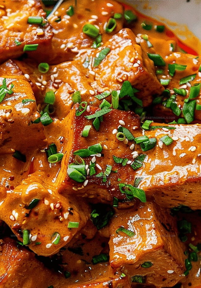 Sizzling spicy tofu with creamy coconut sauce brings Asian-inspired flavors to home kitchens. Delicate tofu cubes swim in rich, spiced coconut milk, creating a balanced dish that satisfies with complex layers of heat and comfort.