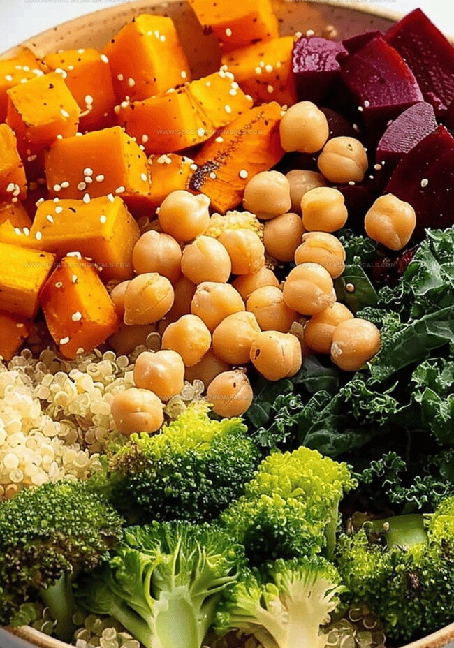 - Bowl Assembly: Layer kale as a base, then strategically arrange quinoa, roasted vegetables, steamed broccoli, and seasoned chickpeas to create a visually appealing and nutritionally balanced meal.