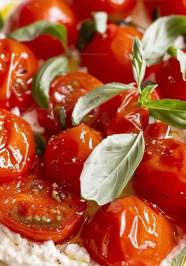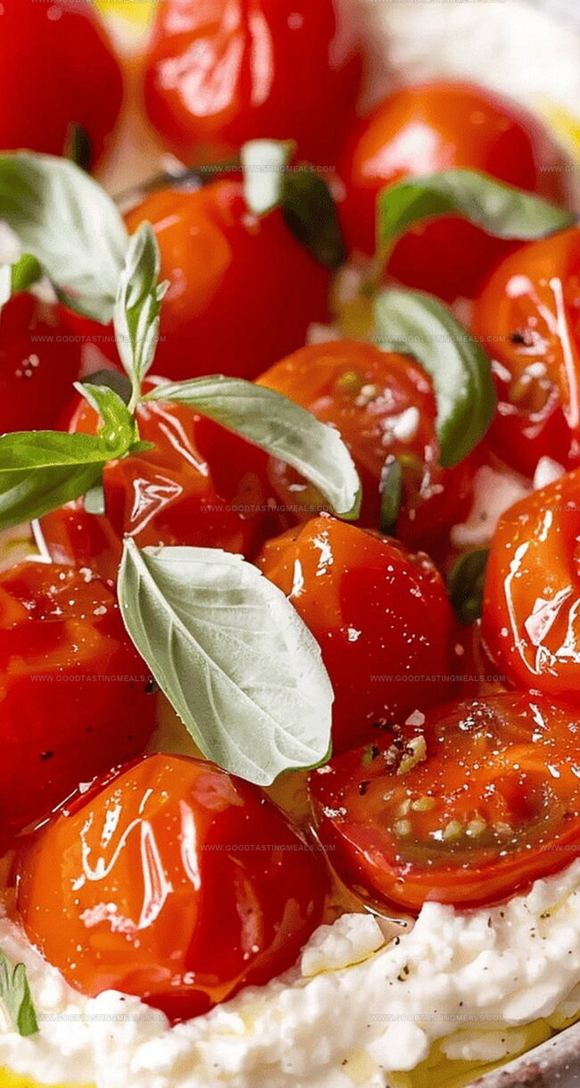 - Fresh basil adds a vibrant, aromatic finish that complements the creamy cheese and sweet roasted tomatoes.