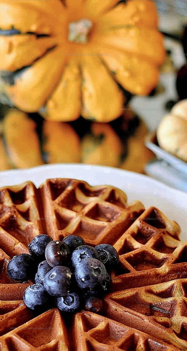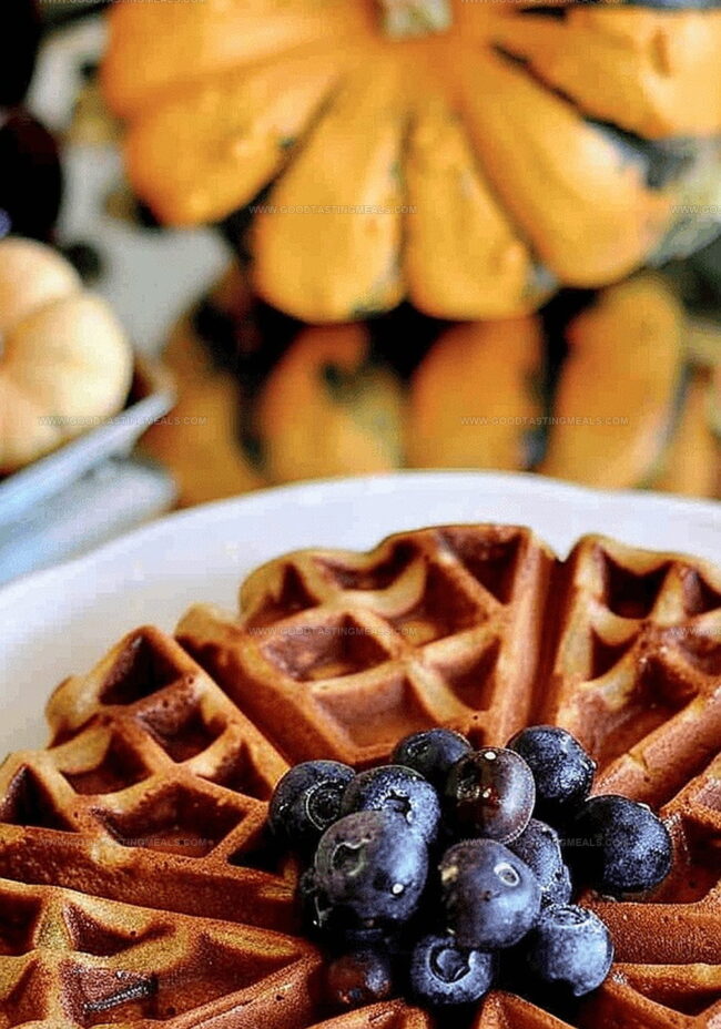 Whole wheat pumpkin spice waffles bring a cozy autumn sensation to your breakfast table.